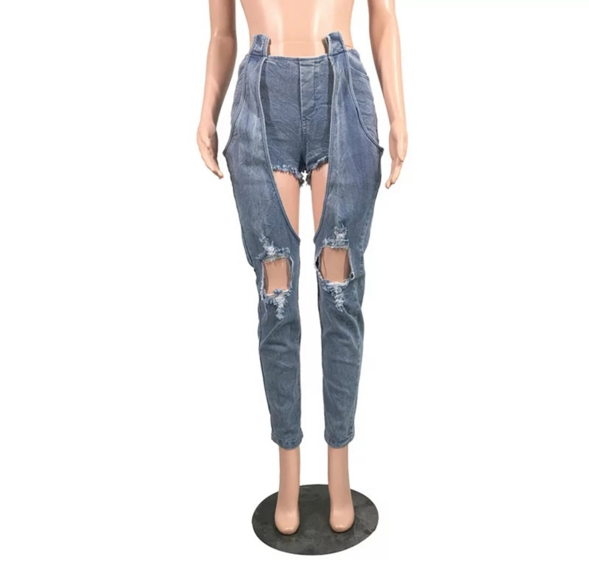 | Sexy Destroyed Hole Denim Jeans for Women High Waist Spliced Ripped Jeans Hollow Out Streetwear Mujer Skinny Full Length Jeans