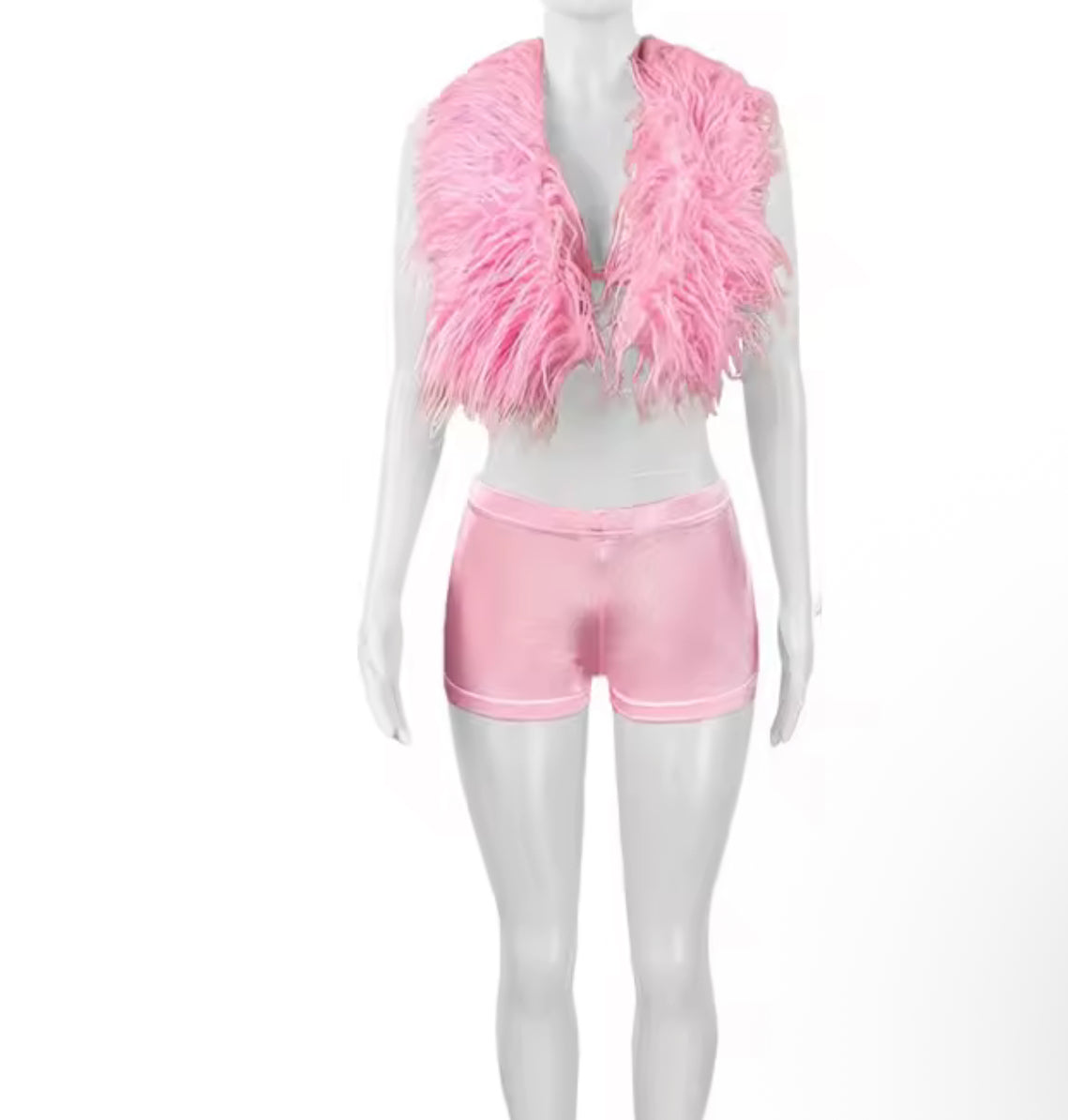 Women's Furry Suits Set 2 Piece Outfits Summer Halter V Neck Backless Crop Top And Stain Matching Shorts Set Clubwear