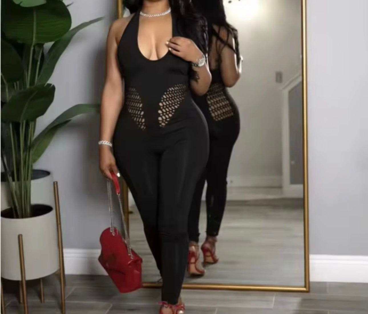 Mesh Hollow Out Jumpsuits Women Concise Solid Street Style Full Sleeve Body-shaping One Piece Female Hipster Attirewear