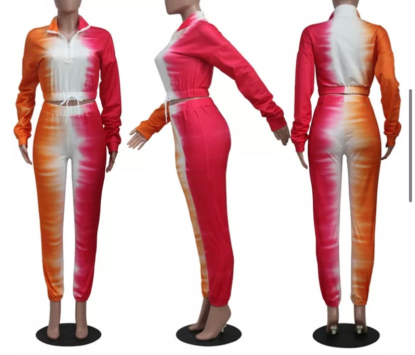 Women Tracksuit Gradient Long Sleeve Zip Up Sweatshirt Crop Tops High Waist Sweatpants Two Piece SeT
