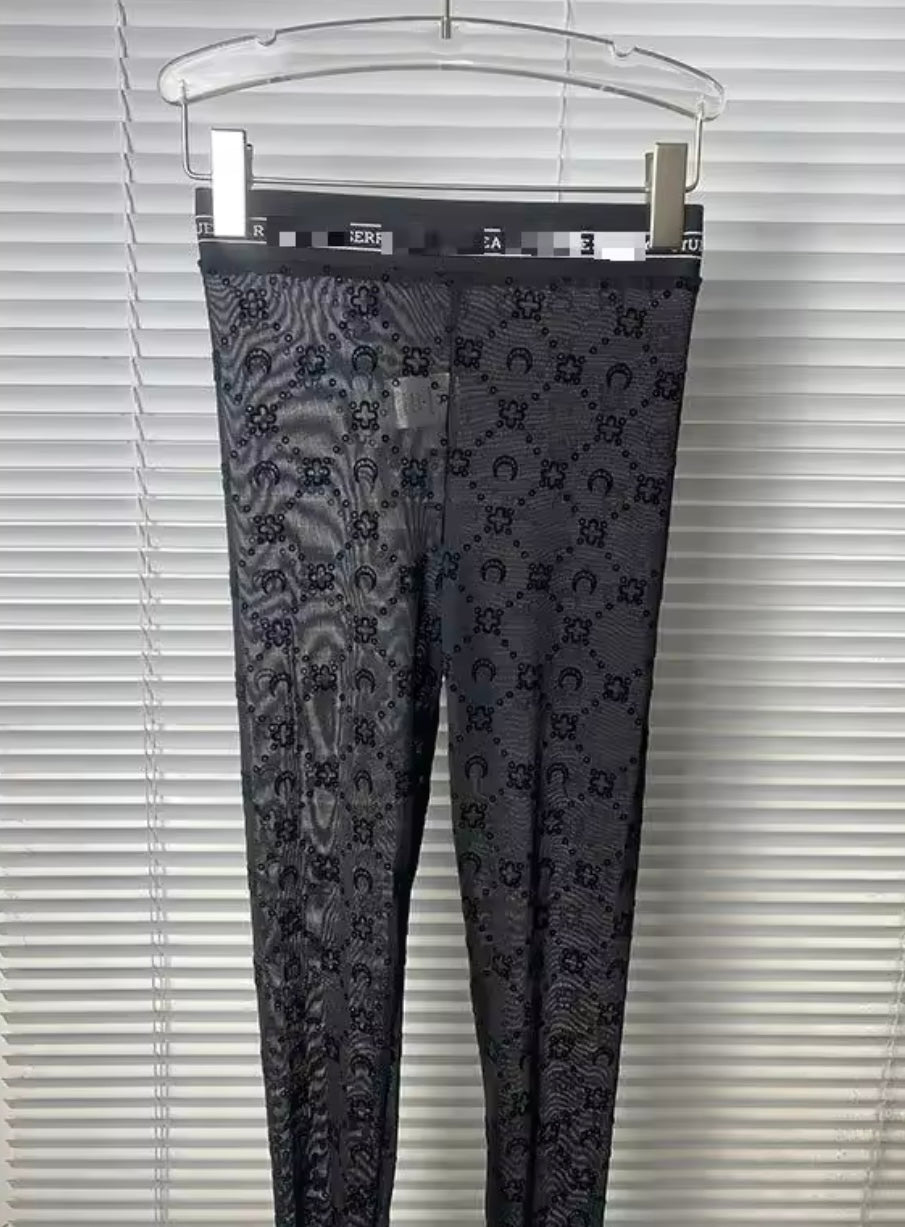 Sexy Mesh See-through Flocking Semi-turtleneck Long-sleeved Top 2024 High Waist S
