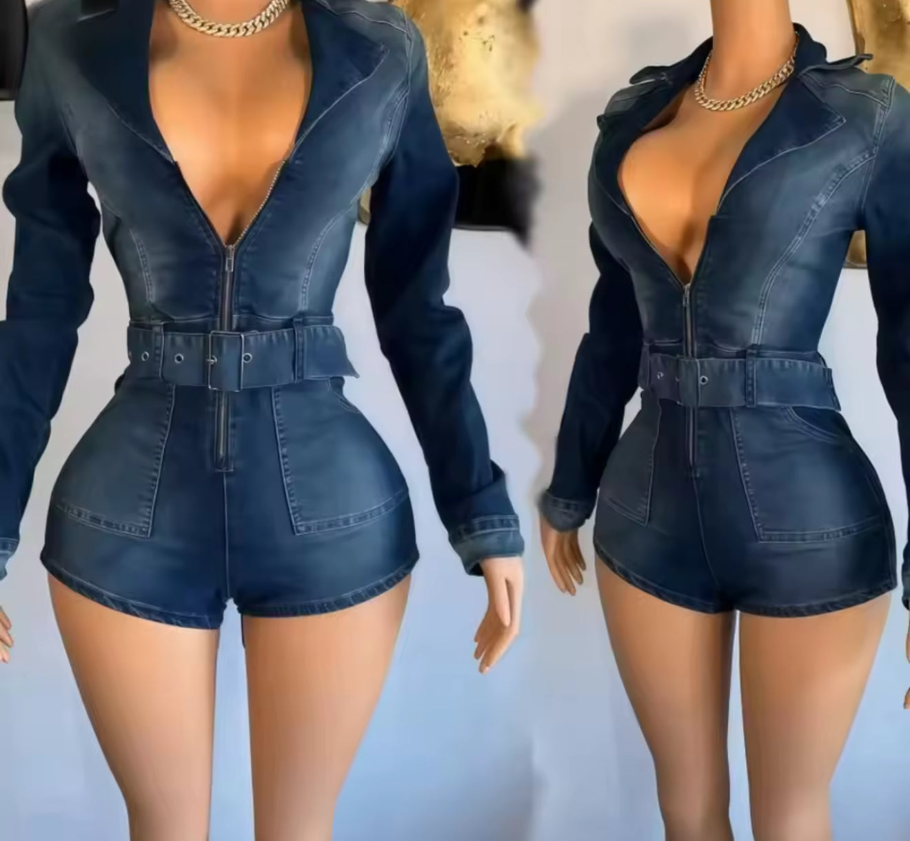 New Arrival Fashion Denim Rompers Bodycon Woman Zip Long Sleeve Crop Jacket Jumpsuits